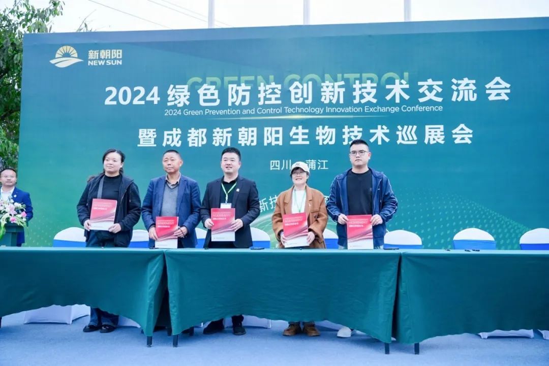 近百家與會企業代表與新朝陽就生物技術的市場應用、發展趨勢以及合作前景進行了深入探討,并達成合作共識,簽署戰略合作協議書,共同推動綠色防控技術的普及與應用,為農業可持續發展貢獻更多力量。